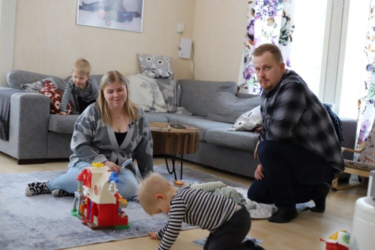 Perheeseen kuuluvat vanhemmat Oskari ja Jessica sekä kolme poikaa: päiväkoti-ikäiset Jaakko ja Eetu sekä perheen viisikuukautinen kuopus Aleksi. Muuton jälkeen arki Taivalkoskella on asettunut sujuvaksi ja jopa helpommaksi kuin aiemmin.