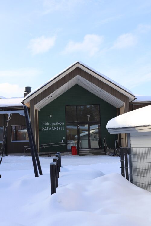 ”Lapsiperheen näkökulmasta Taivalkoskella on koulu- ja päiväkotipalvelut mitä parhaimmalla tasolla. Ensinnäkin täällä on sopivan kokoinen, perinteinen koulu. Tykätään siitä, että kirjat on paperisia ja pulpetit puisia. Lapsiin panostetaan, meillä on juuri valmistunut, uusi päiväkoti ja maksuton varhaiskasvatus.”